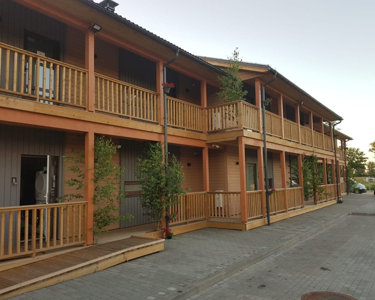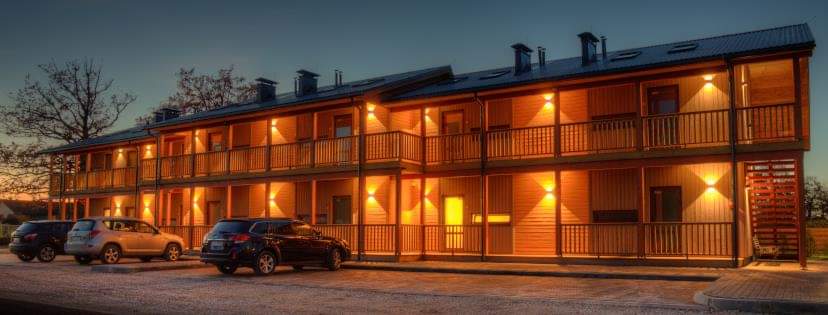 Nelielas koka konstrukciju viesnīcas ēkas projekts netālu no Valmieras tika realizēts, lai izmitinātu sportistus un citus viesus netālu no tenisa hallēm, kas tika būvētas dažus gadus vēlāk. Viesnīcas projekts tapis kā apartamenti ar atsevišķu ieeju katrā numuriņā no ārtelpas, lai nebūtu lieku telpu un ekspluatācijas izdevumu. Bet gadu vēlāk, sākoties globālajai pandēmijai, tas izrādījās trāpījums desmitniekā ar koncepciju, ka viesi savā starpā nesatiekas. Katrai istabiņai ir atsevišķa ieeja, vieta automašīnai, turpat apkārt Kocēnos pastaigu takas un, protams, pieejamas arī sporta aktivitātes. Veiksmīgs projekts no daudziem aspektiem un arī pēc sešu gadu kalpošanas lieliski izskatās, saņēmis viesu augstu vērtējumu un var tikt dēvēts par pilotprojektu mūsdienīgai koka būvniecībai Latvijā.
