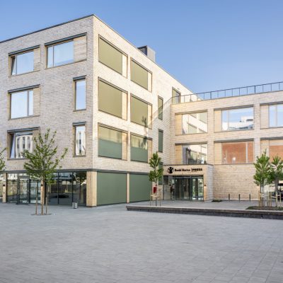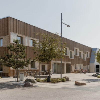 Lielveikals un dzīvokļi mūsdienīgā koka būvē Vācijas mazpilsētā