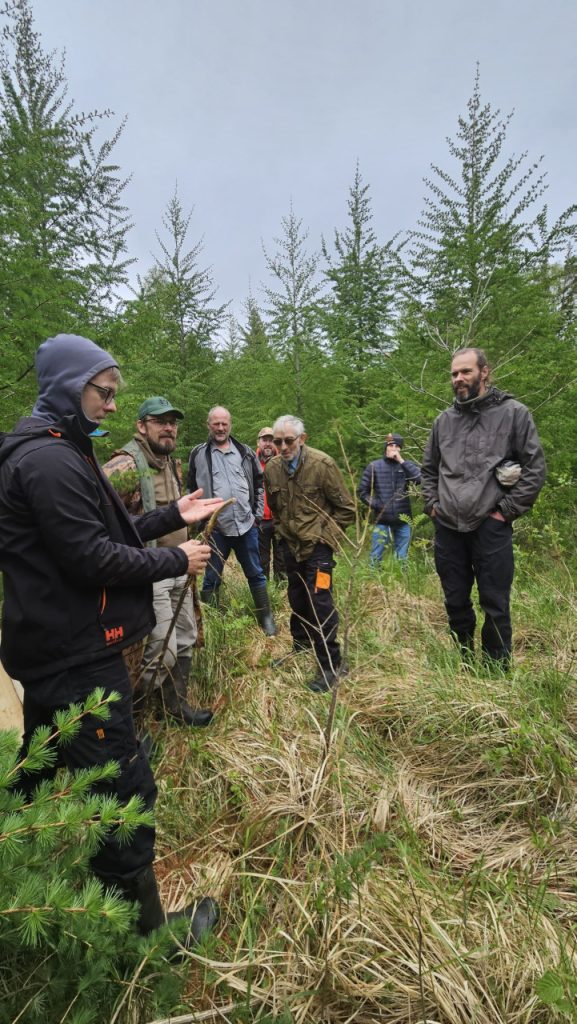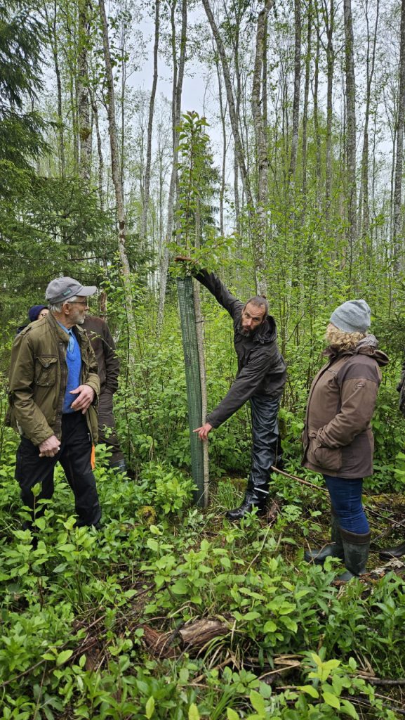 Jēgpilna meža apsaimniekošana nav iedomājama bez zinātnes atbalsta. LVMI Silava pētnieki Āris Jansons un Raitis Rieksts-Riekstiņš turpmākajā Meža zināšanu dienu programmā izglītoja meža īpašniekus četros dažādos MPS zinātniskās izpētes objektos. Kā pirmo objektu apmeklējām introducēto koku sugu stādījumus, kas atrodas iežogotā platībā. Klimatisko pārmaiņu dēļ meža īpašniekiem jāsāk aizvien vairāk domāt par nākotnes audžu veidošanu no koku sugām, kuru dabiskais izplatības areāls nav Latvijas teritorija. Attīstoties un pieaugot interesei par dažādu introducēto koku sugu audzēšanu, bija vērtīgi redzēt, kā dabā izskatās parastā ozola stādījumi salīdzinājumā ar tajā pašā laikā stādītiem ainaviski izteiksmīgajiem sarkanajiem ozoliem. Šajā objektā novērtējām arī hibrīdās lapegles stādījumus, kas ierīkoti 2017. gadā un jau sasnieguši ievērojamu augstumu, krietni pārspējot turpat blakus stādītās egles.